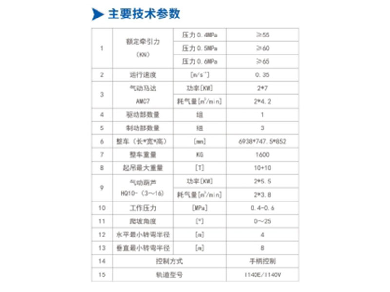 承載小車、連接裝置、氣動(dòng)葫蘆*2(10噸)等。